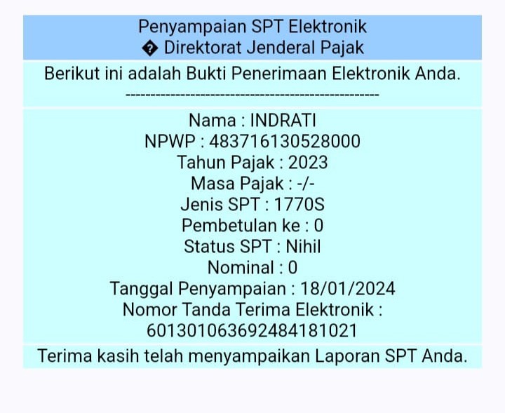 Bukti Laporan SPT Tahunan KEC. JENAWI