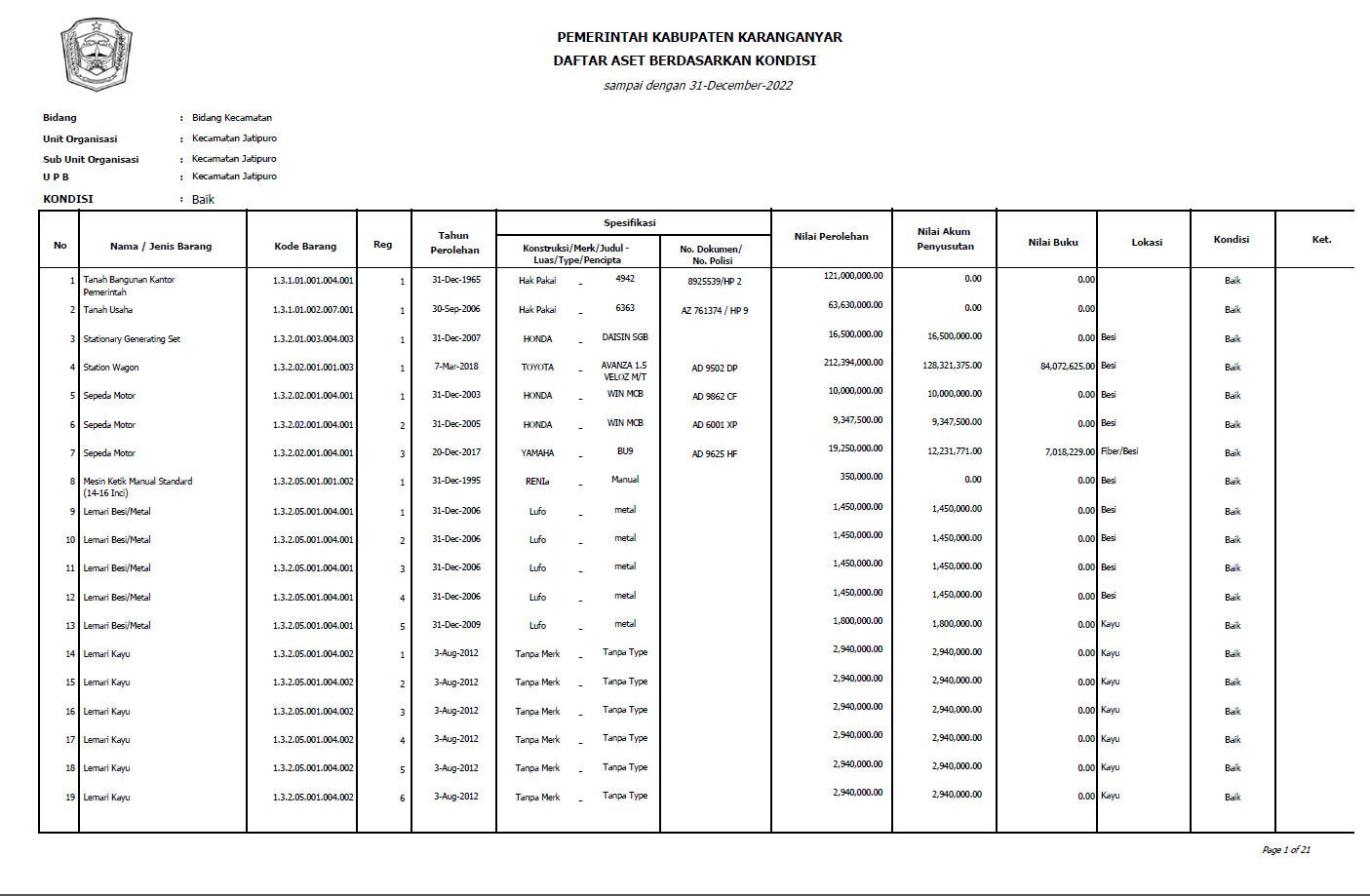 Daftar Aset Kondisi Baik Sampai Desember 2022 1