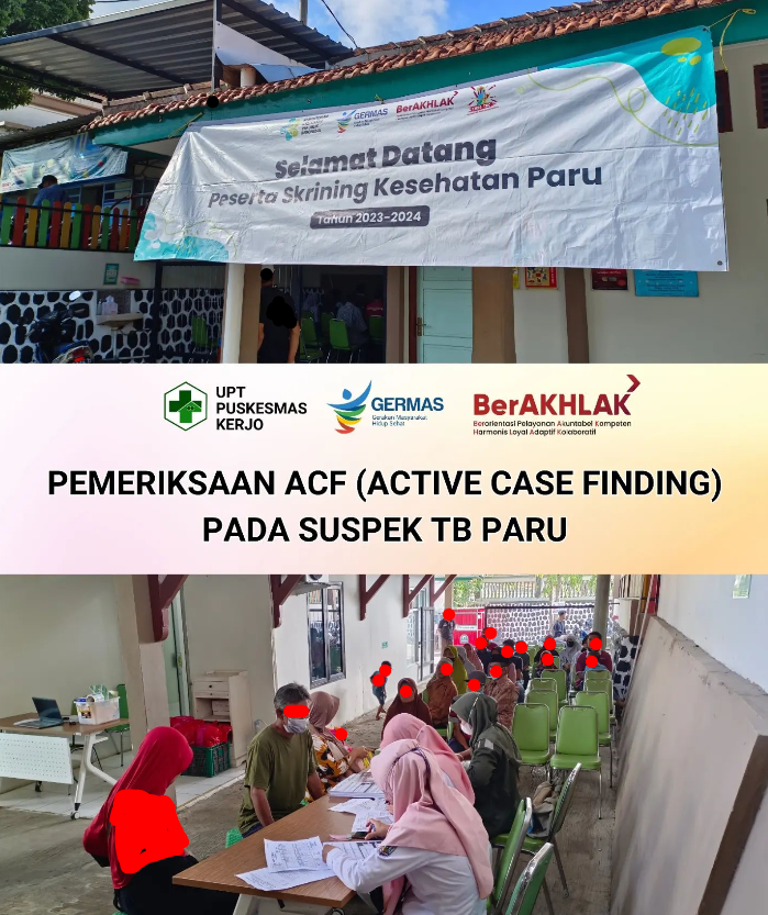 Pemeriksaan ACF pada Suspek TB Paru di halaman Gedung tengah Puskesmas Kerjo