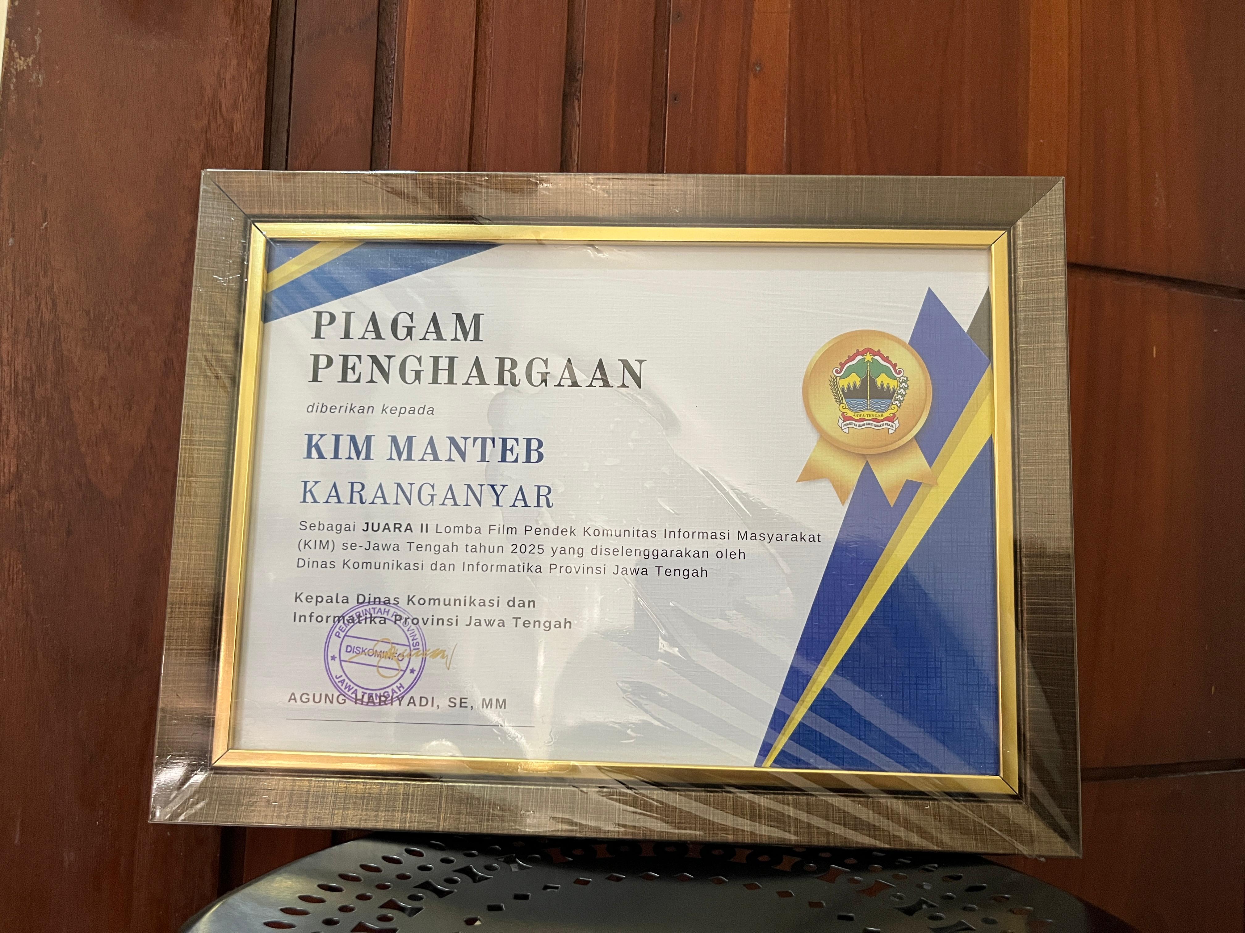 Piagam Juara 2 Lomba Film Pendek KIM Jateng 2025