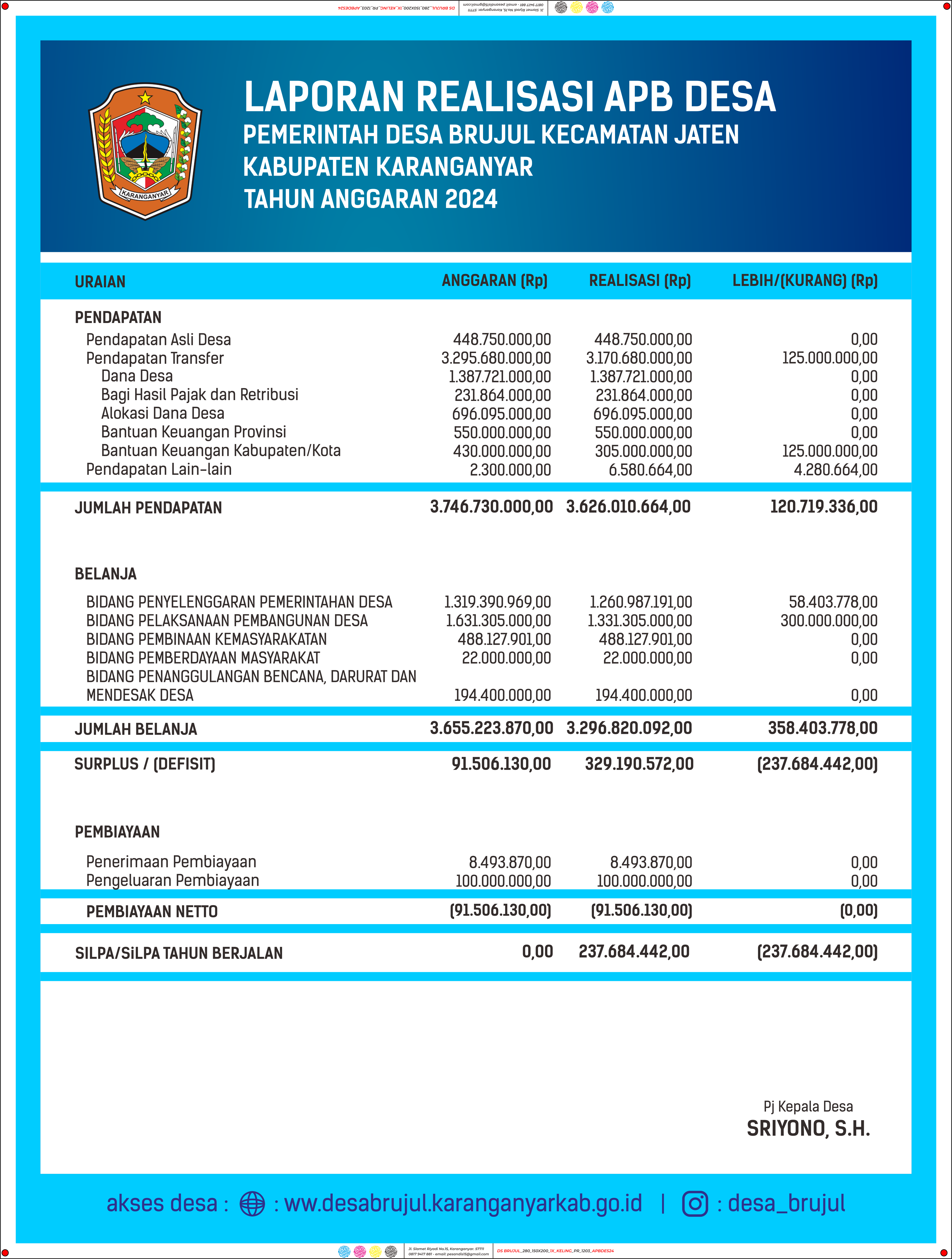 realisasi APBDES TA 2024 Desa Brujul Kec. Jaten
