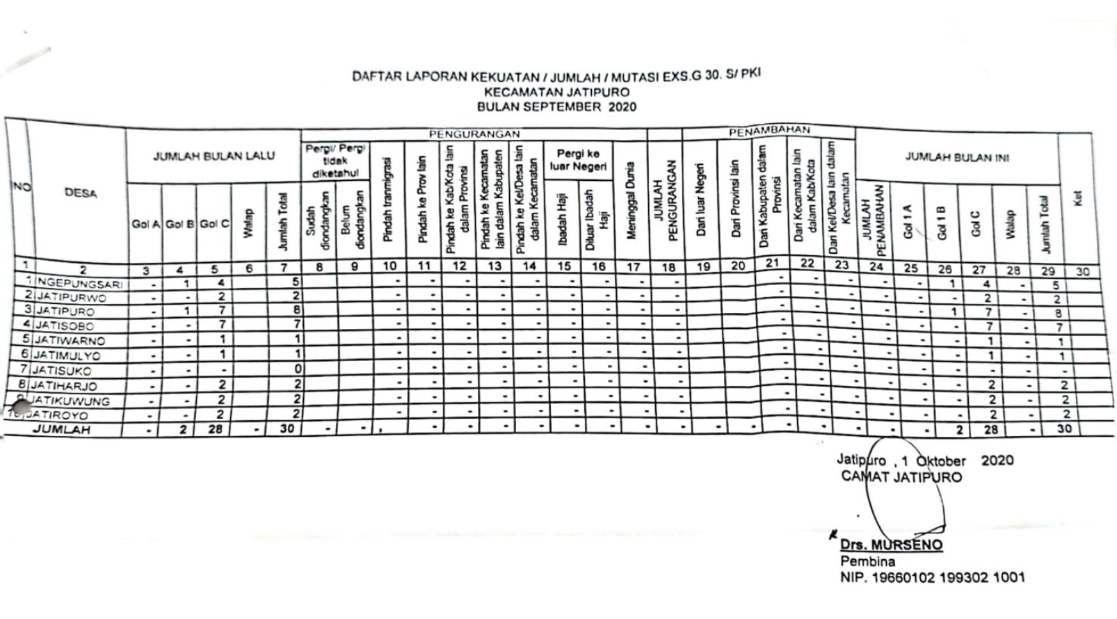 Rekapitulasi Eks G30SPKI September 2020