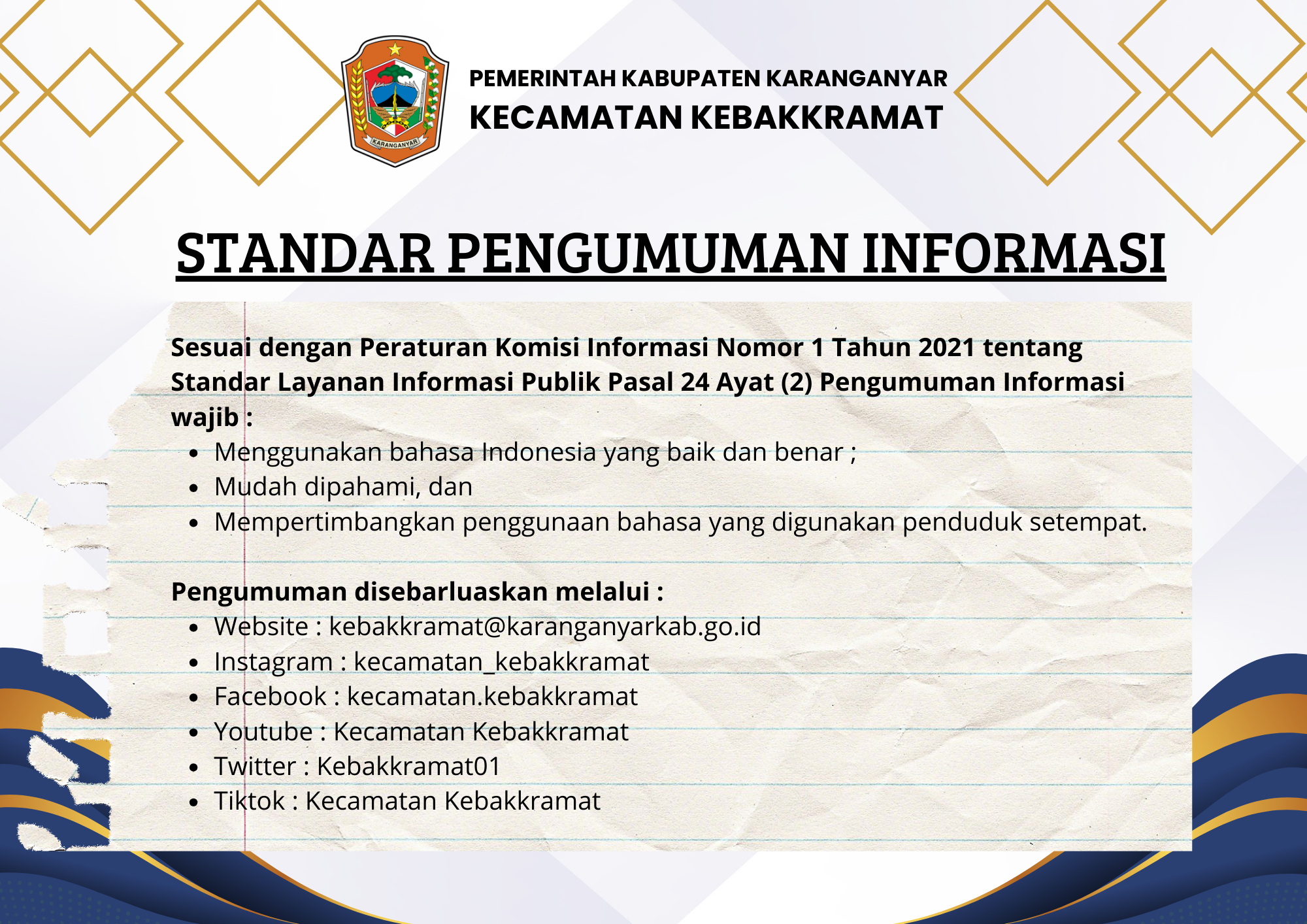 STANDAR PENGUMUMAN INFORMASI KEC KEBAKKRAMAT